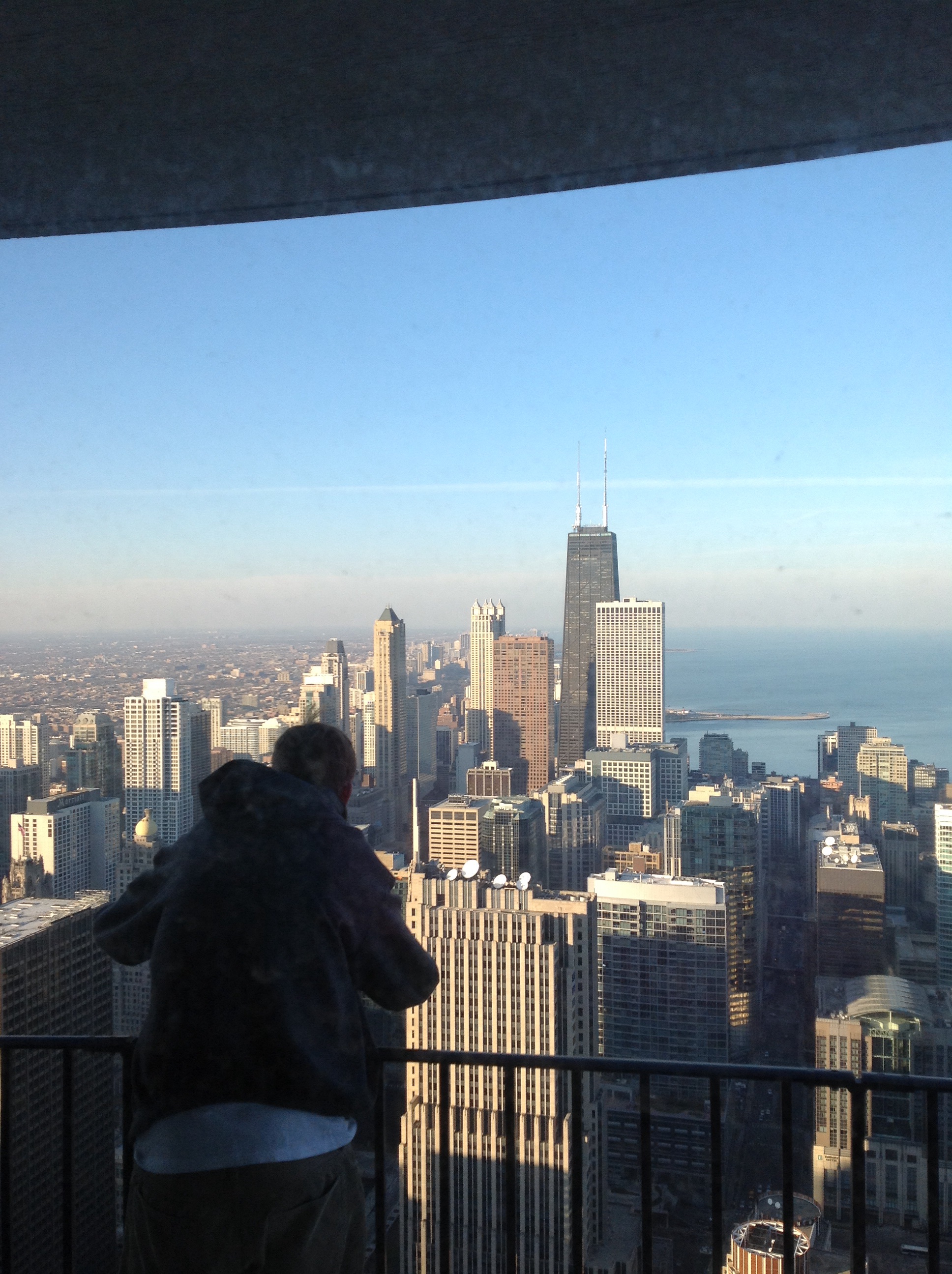 The view from Chicago, with Gerry’s son taking a photo from the terrace of Billy and Ann’s 78th floor apartment.
