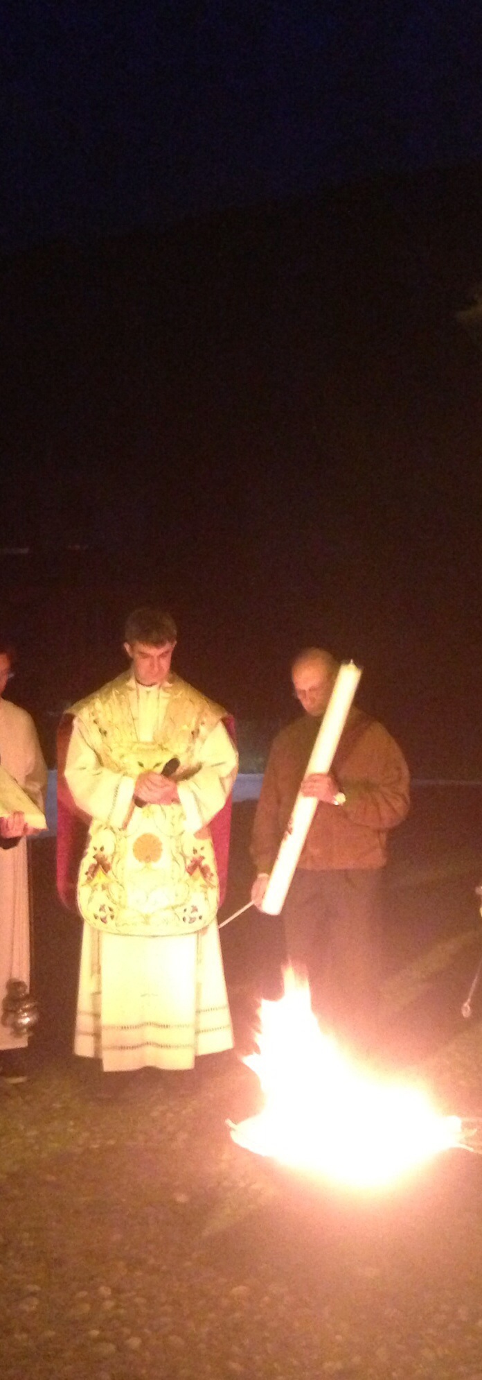 This image is from the Saturday night Mass before Easter, Sabato Santo, which follows Giovedi Santo, Venerdi Santo and proceeds Pasqua – Easter. The whole Lenten period is lived with a greater consciousness of good and evil, of right and wrong, of despair and hope, of suffering and resurrection. As it happens, this Easter period was one in which my brother-in-law Stefano seemed to embody so many of the things we think about now. He has been fighting cancer and had his Doctor’s appointment the Friday before Easter to find out the results of his latest PET scan. It came out clear; he is fine. I thought back to the past year and a half, his suffering certainly a heavy cross for him to bear. At one point, lying on the sofa, with his feeding tube threaded down his nose, weakened and shrunk by heavy doses of chemotherapy and radiation, he looked at me with world-weary eyes and said “I think I would rather have died”. But he came through, and he still carries the heaviest cross of all, the death of his oldest son in a car accident.